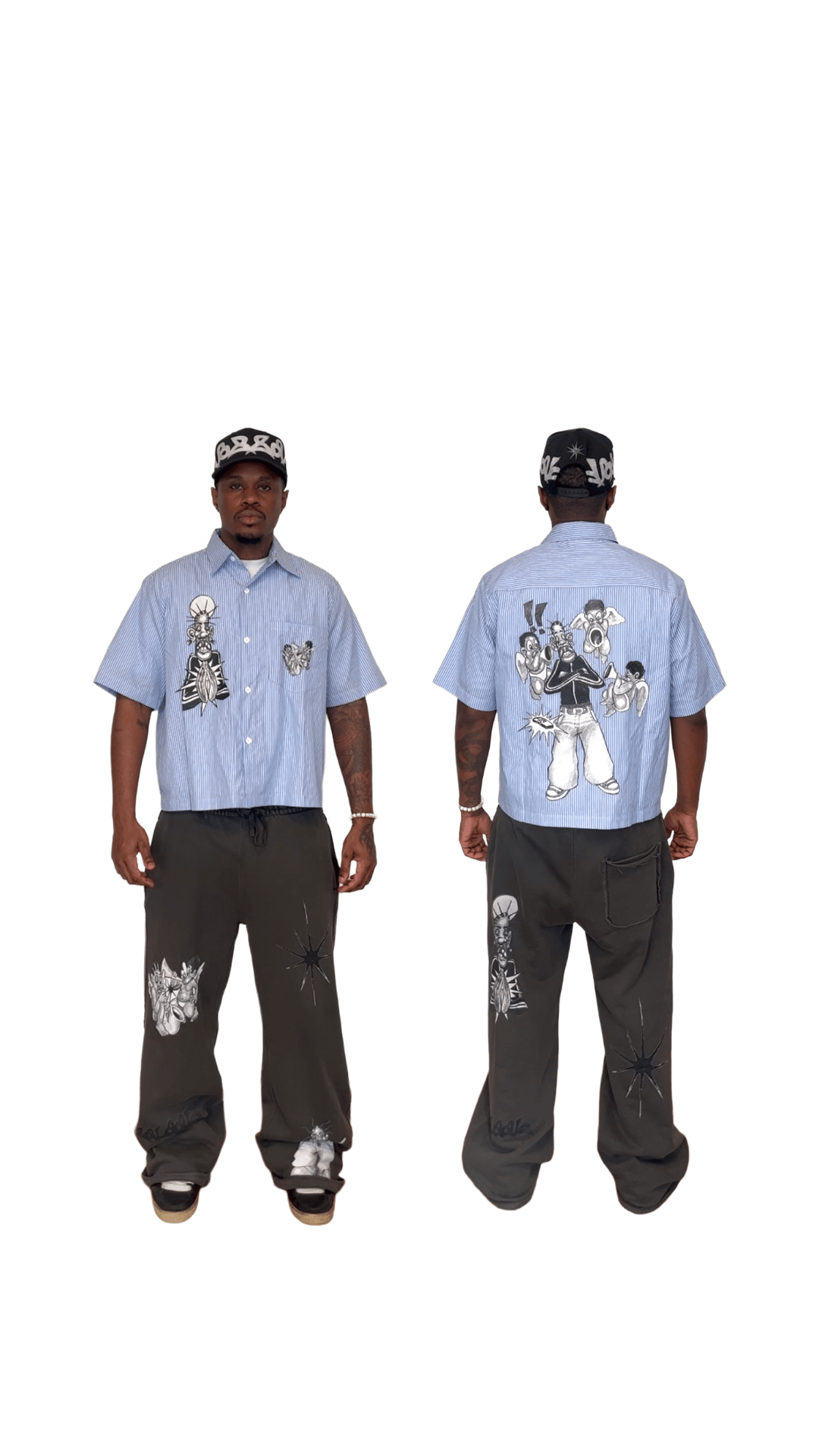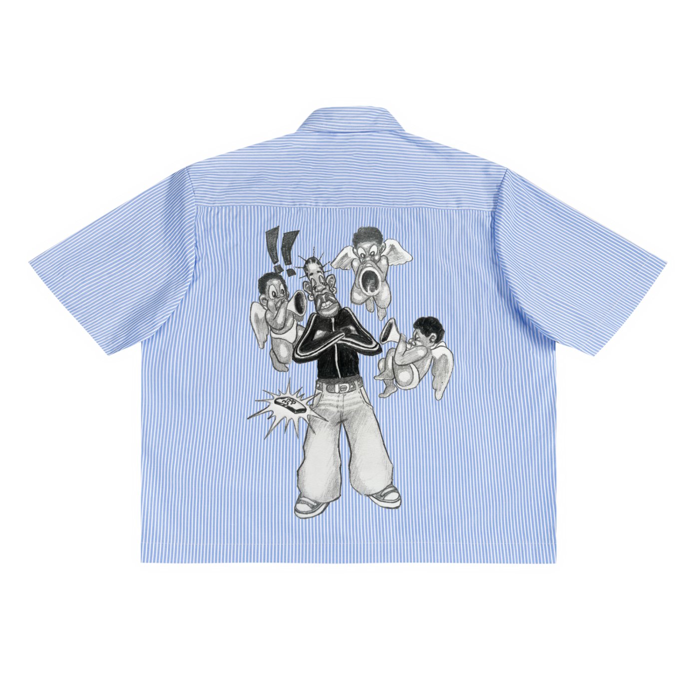 This short-sleeve shirt features a relaxed, cropped fit with vertical stripes for a sleek, stylish look. Perfect for both casual outings and workwear, its lightweight fabric ensures all-day comfort.
